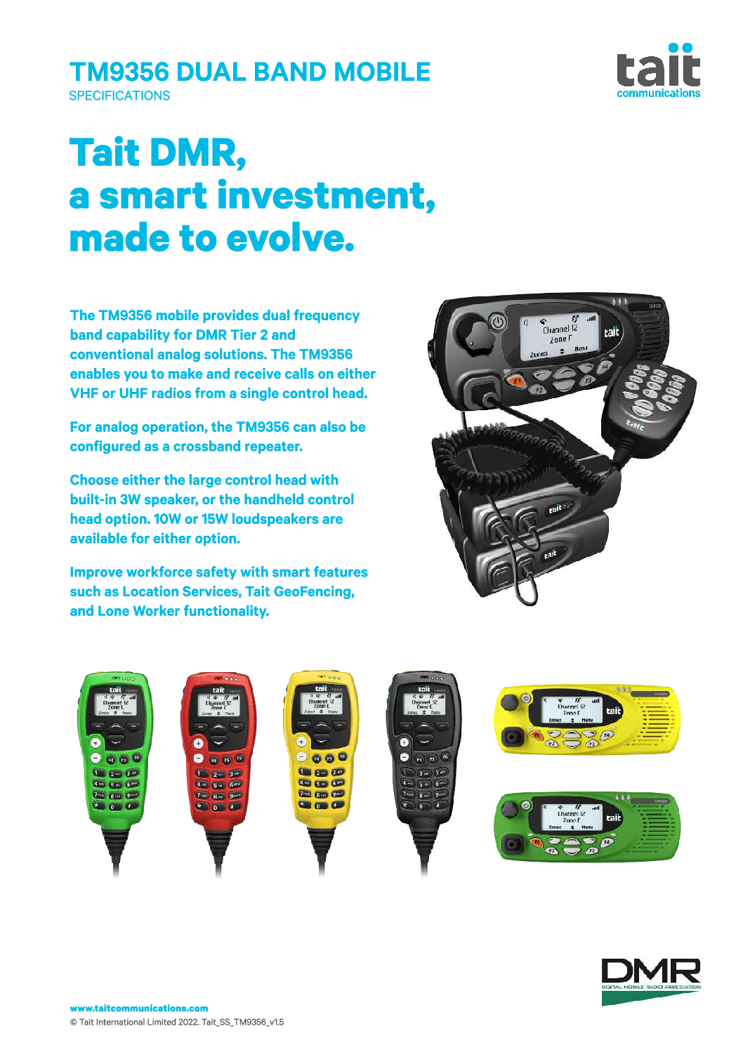 Each TM9356 can have four modes: Analog Conventional, MPT-1327, DMR Tier 2, and DMR Tier 3. - Tait Unified Vehicle Ready